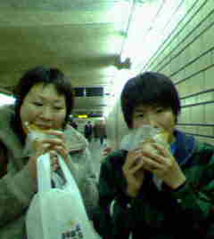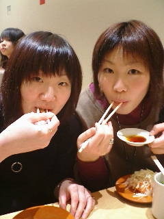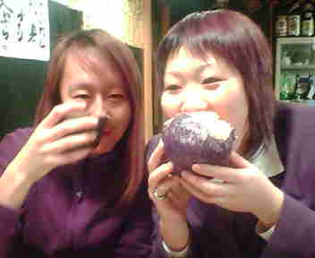 | 原宿の回転寿司“柿家”にて大トロを頬張る二人。 |