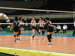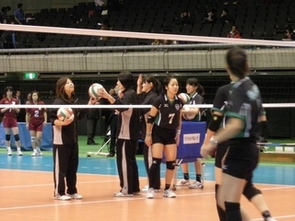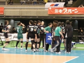| コートチェンジでアップ開始! |